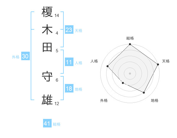 榎木田 守雄さんの総格は41画の5点!