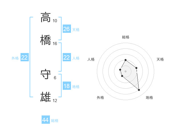 高橋 守雄さんの外格は22画の1点!