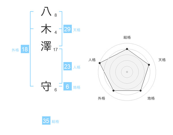 八木澤 守さんの総格は35画の4点!