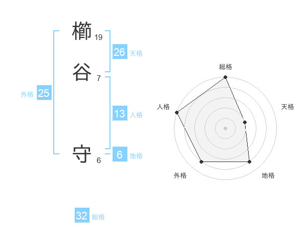 櫛谷 守さんの総格は32画の5点!