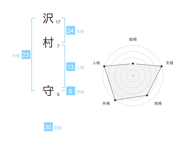 沢村 守さんの総格は30画の2点!