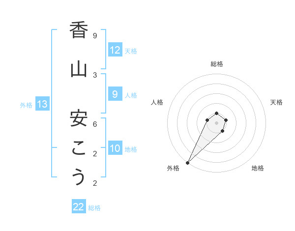 香山 安こうさんの外格は13画の5点!