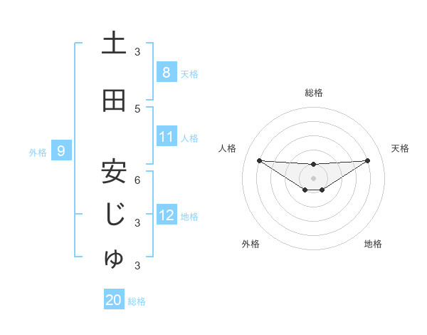 土田 安じゅさんを姓名の画数から五運を鑑定
