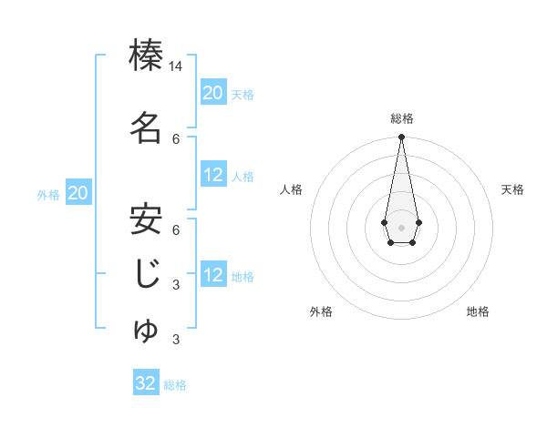榛名 安じゅさんの総格は32画の5点!
