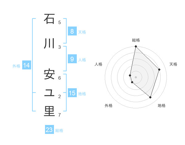 石川 安ユ里さんを姓名の画数から五運を鑑定