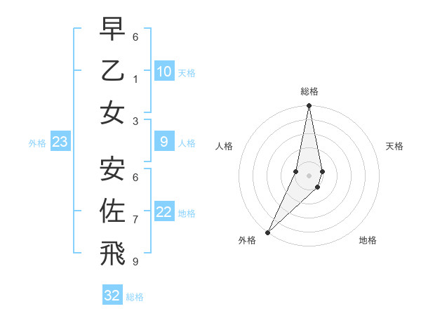 早乙女 安佐飛さんを姓名の画数から五運を鑑定