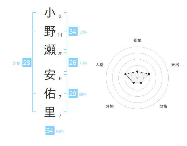 小野瀬 安佑里さんを姓名の画数から五運を鑑定