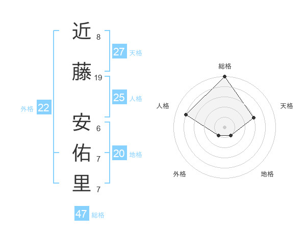 近藤 安佑里さんの総格は47画の5点