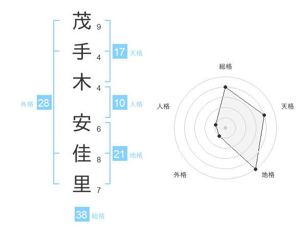 茂手木 安佳里さんの天格は17画の4点!