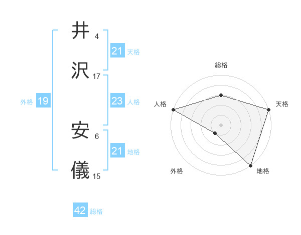 井沢 安儀さんの天格は21画の5点!