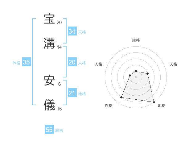 宝溝 安儀さんの総格は55画の1点!