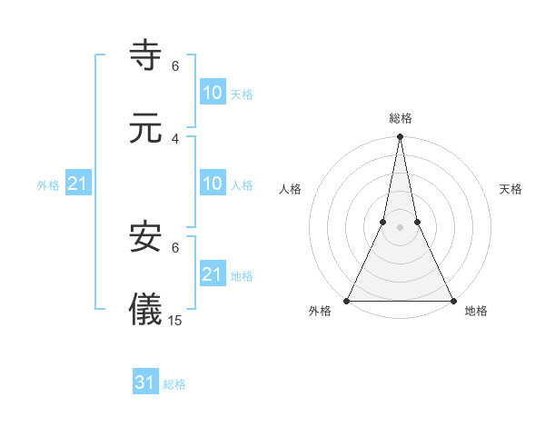 寺元 安儀さんの外格は21画の5点!