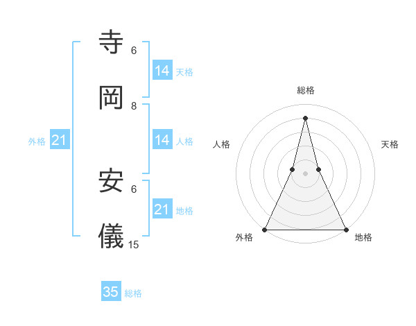 寺岡 安儀さんを姓名の画数から五運を鑑定
