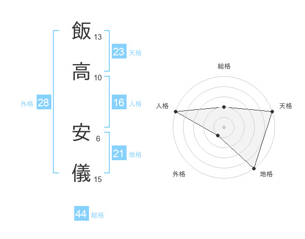 飯高 安儀さんの総格は44画の2点!