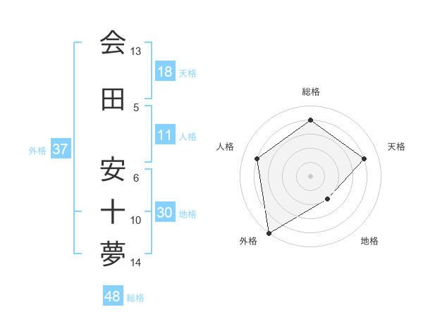 会田 安十夢さんを姓名の画数から五運を鑑定