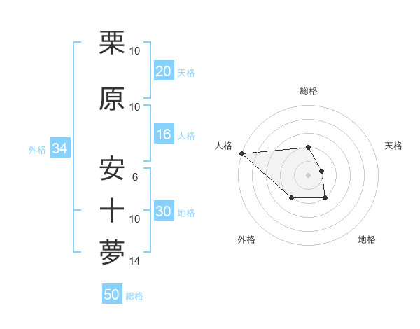 栗原 安十夢さんを姓名の画数から五運を鑑定