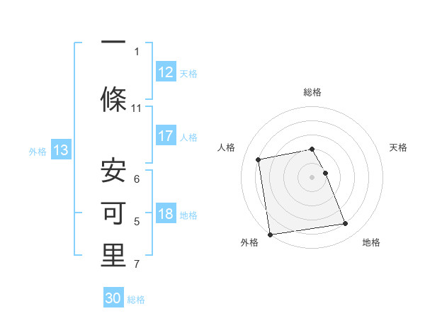 一條 安可里さんの外格は13画の5点!