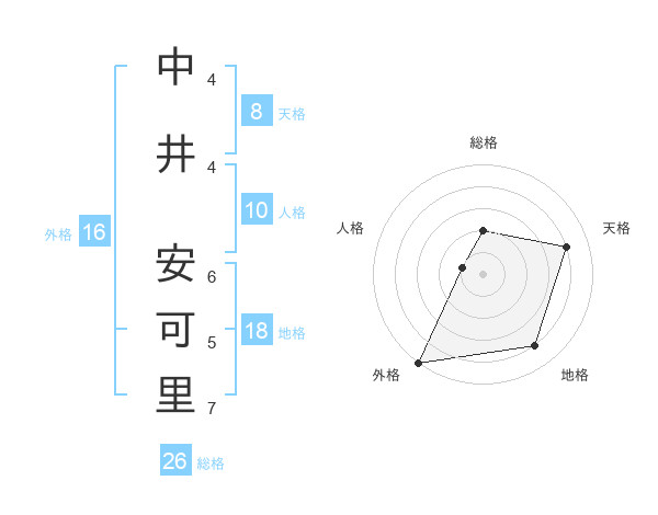 中井 安可里さんの総格は26画の2点!