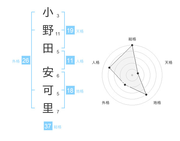 小野田 安可里さんを姓名の画数から五運を鑑定