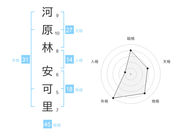 河原林 安可里さんを姓名の画数から五運を鑑定