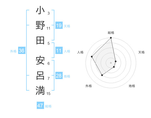 小野田 安呂満さんを姓名の画数から五運を鑑定