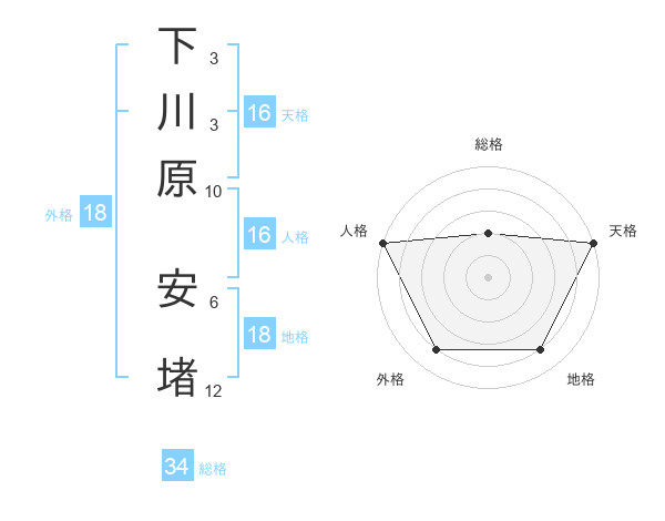 下川原 安堵さんの総格は34画の2点!