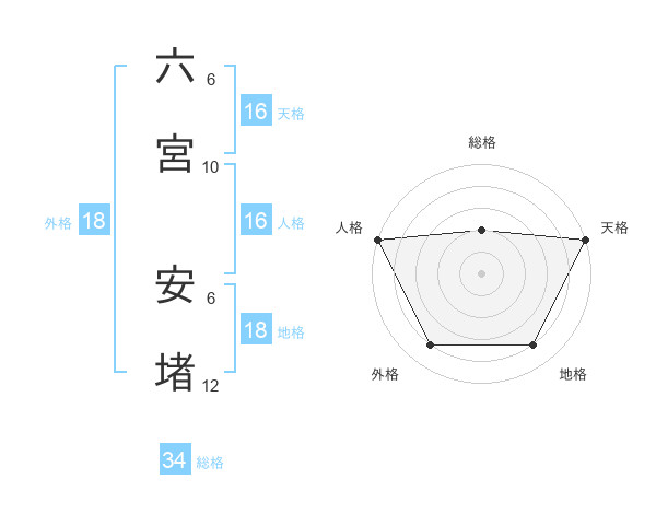 六宮 安堵さんの総格は34画の2点!
