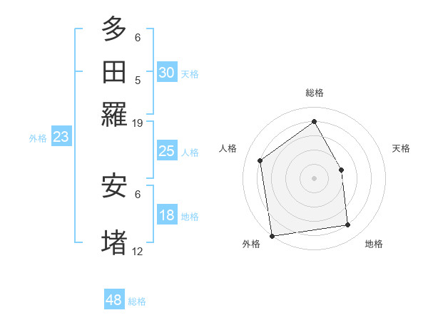 多田羅 安堵さんを姓名の画数から五運を鑑定