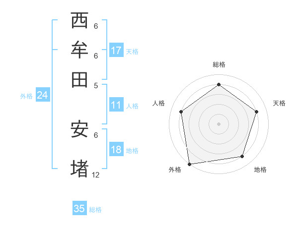 西牟田 安堵さんの総格は35画の4点!