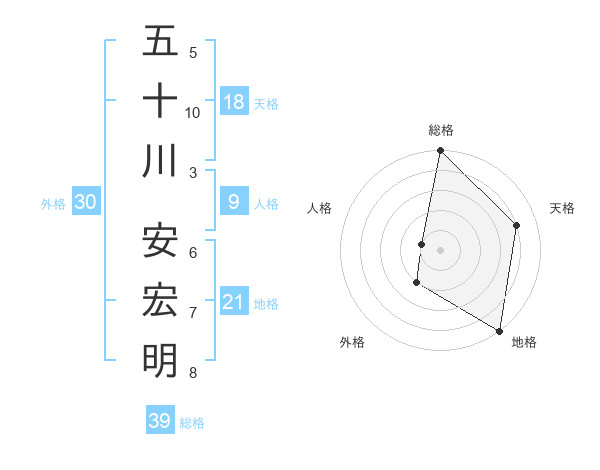 五十川 安宏明さんを姓名の画数から五運を鑑定