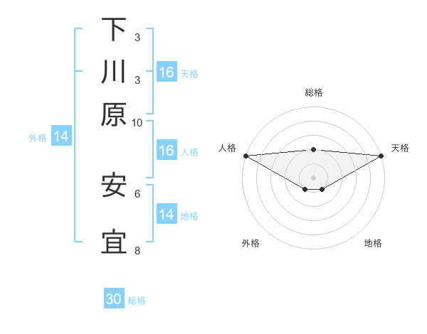 下川原 安宜さんを姓名の画数から五運を鑑定