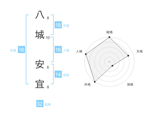 八城 安宜さんの外格は16画の5点!