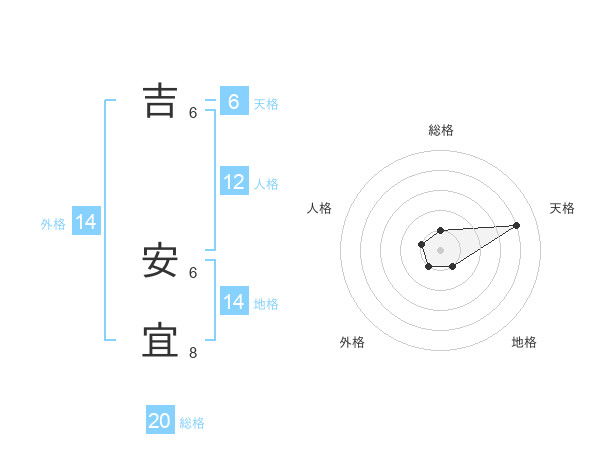 吉 安宜さんの総格は20画の1点!