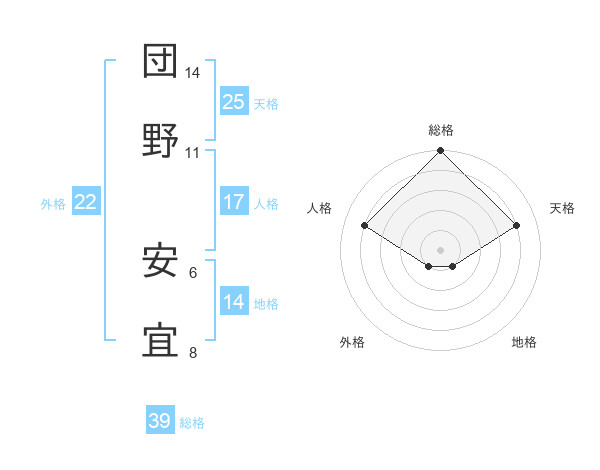 団野 安宜さんの総格は39画の5点!