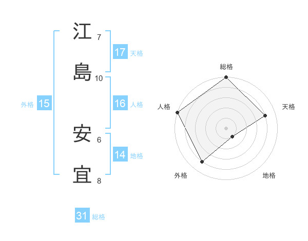 江島 安宜さんの総格は31画の5点!