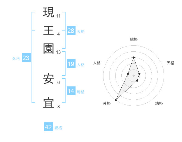 現王園 安宜さんを姓名の画数から五運を鑑定