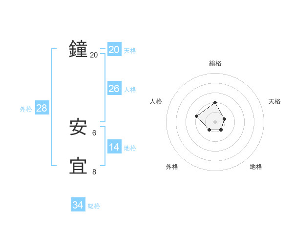 鐘 安宜さんを姓名の画数から五運を鑑定