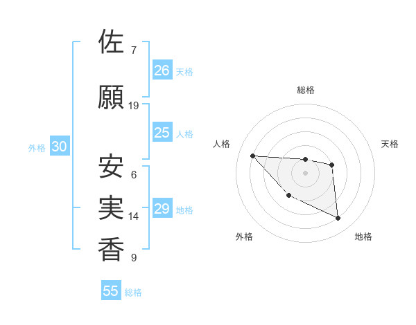 佐願 安実香さんの総格は55画の1点