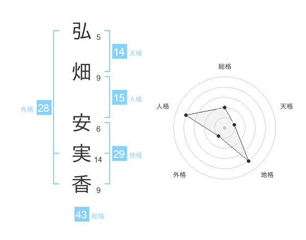 弘畑 安実香さんの総格は43画の2点!
