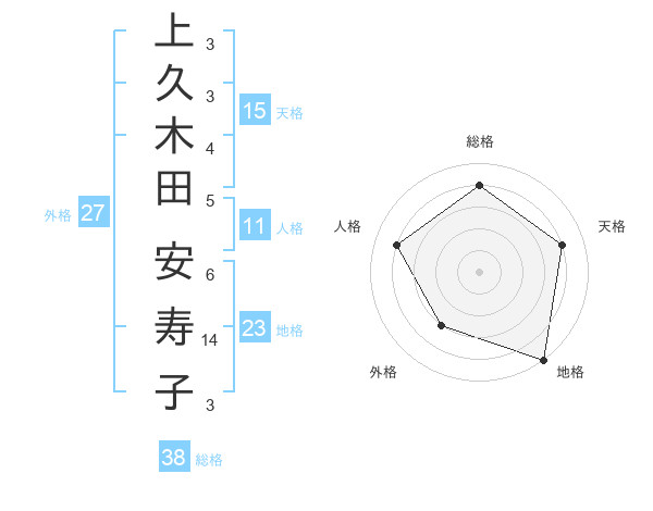 上久木田 安寿子さんの総格は38画の4点