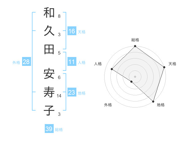 和久田 安寿子さんを姓名の画数から五運を鑑定