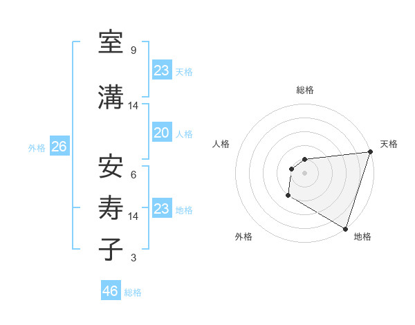 室溝 安寿子さんを姓名の画数から五運を鑑定