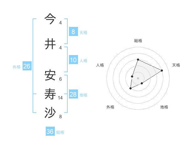 今井 安寿沙さんを姓名の画数から五運を鑑定