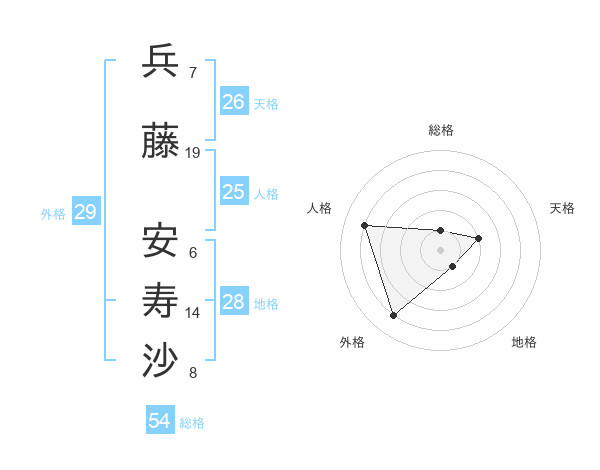 兵藤 安寿沙さんを姓名の画数から五運を鑑定