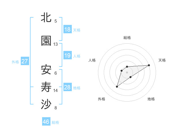 北園 安寿沙さんを姓名の画数から五運を鑑定
