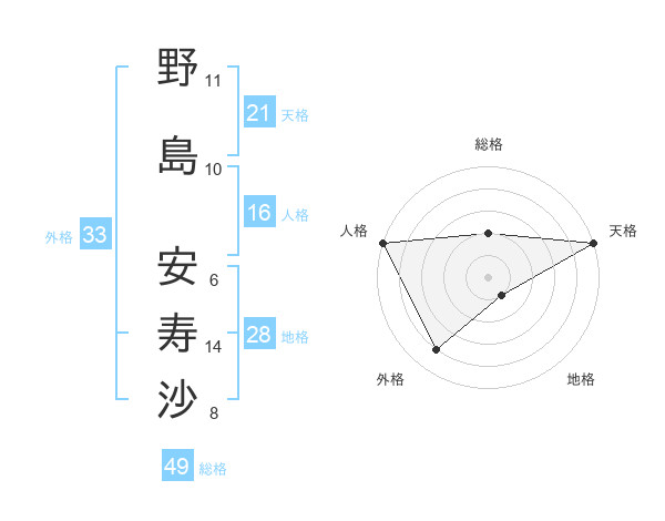 野島 安寿沙さんを姓名の画数から五運を鑑定