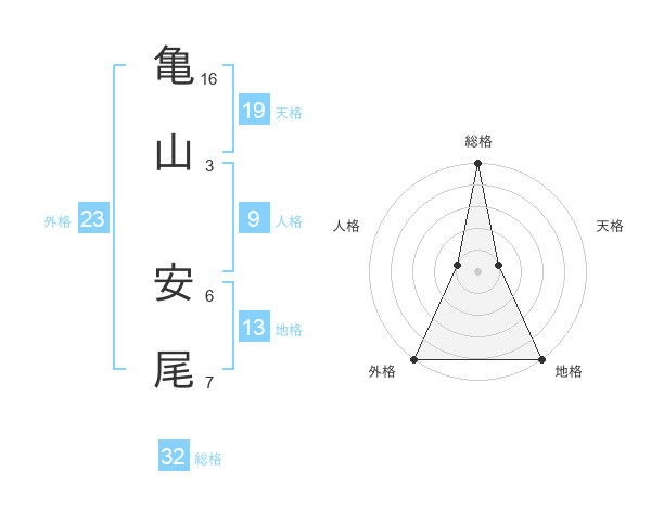 亀山 安尾さんの総格は32画の5点!