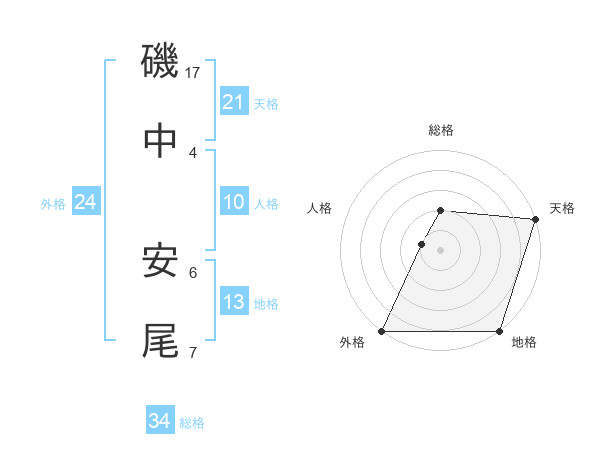 磯中 安尾さんの天格は21画の5点!