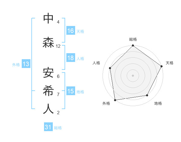 中森 安希人さんの総格は31画の5点!
