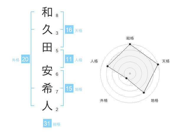 和久田 安希人さんを姓名の画数から五運を鑑定